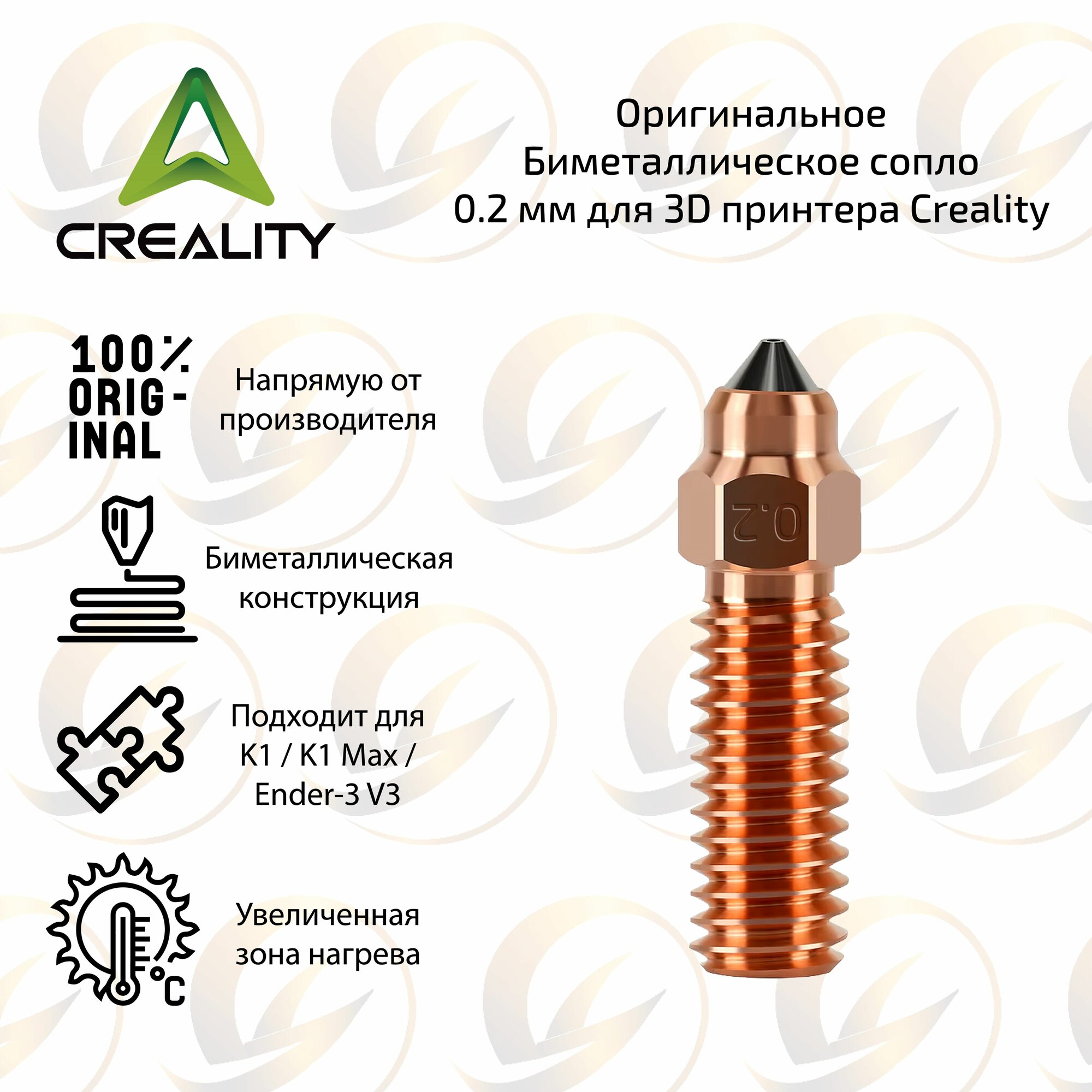 Биметаллическое сопло 0.2 мм для 3D принтера Creality K1/ K1 Max / Ender 3 V3 идеально подходит для пользователей, которые ищут надёжные решения для 3D-печати с высокими нагрузками и использованием различных материалов.
