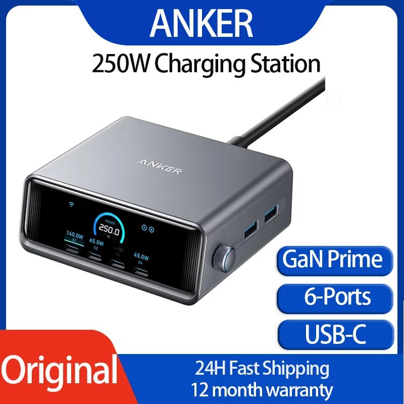 Купить Оригинальное зарядное устройство Anker Prime, 6-портовая зарядная станция GaN мощностью 250 Вт, быстрая зарядка, USB-адаптер для зарядного устройства C, настольный мульти-разъем A2345, A2345 Black с доставкой по всей России.