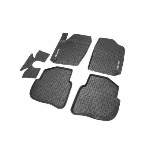 Комплект новых оригинальных Ковров с серой надписью RAPID на переднтх коврах и оригинальным 3D рисунком , для SKODA RAPID 2020-2024гв