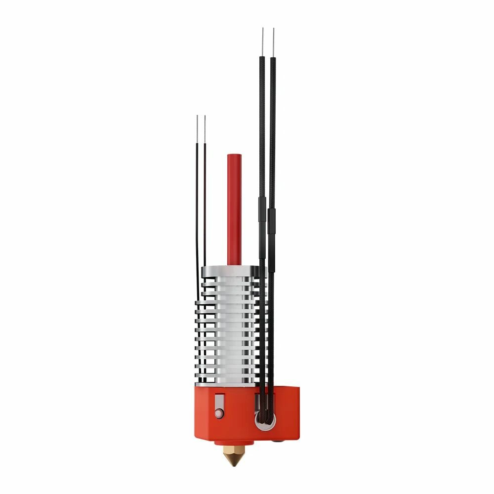 Хотэнд поставляется в комплекте со всем необходимым для монтажа и начала использования. В комплект входят сопло, термоблок с термо-горловиной, термистор и нагревательный элемент, что обеспечивает полную функциональность и готовность к работе.