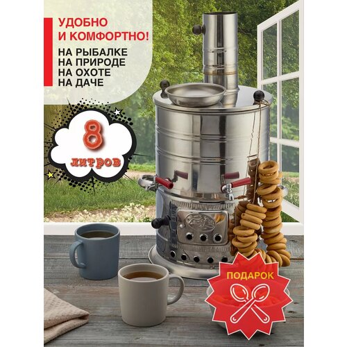 самовар на дровах 7 литров, туристическая посуда нержавейка,
