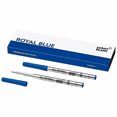 Шариковые стержни знаменитого немецкого бренда Montblanc. Подходят для всех шариковых ручек Монблан, кроме модели "Meisterstück Hommage à W.A. Mozart". Цвет чернил: Royal Blue (синий) Толщина линии: M В упаковке 2 шариковых стержня