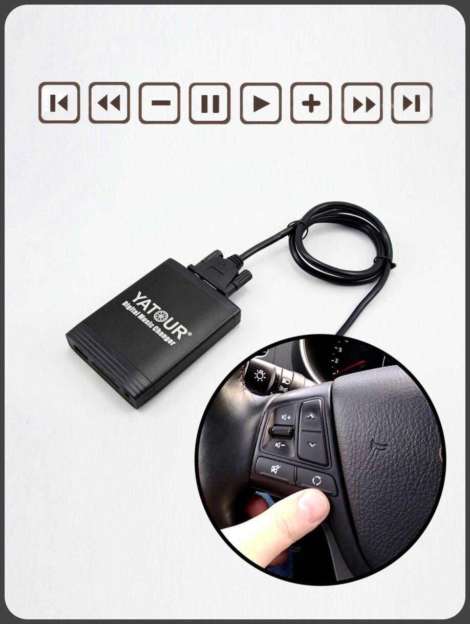Отличное качество звука наравне со штатным CD-проигрывателем с возможностью управления кнопками на руле.