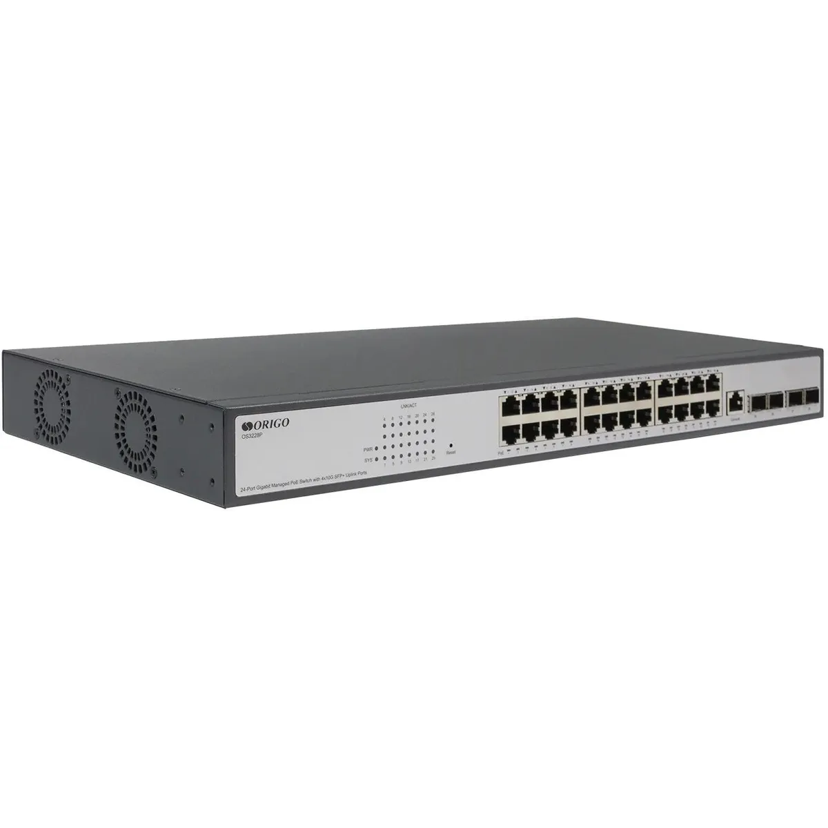 ORIGO OS3228P/370W/A1A Коммутатор Managed L3 Switch 24x1000Base-T PoE, 4x10GBase-X SFP+, PoE Budget 370W, RJ45 Console, 19″ w/brackets: сравнение цен, характеристики, фото, актуальное наличие и цены.