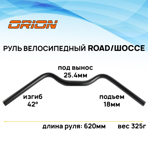 ORION Руль для дорожного велосипеда, диаметр 25.4 подьем 18 мм. шириной 620мм, изгиб назад 42, AL6061: сравнение цен, характеристики, фото, актуальное наличие и цены.