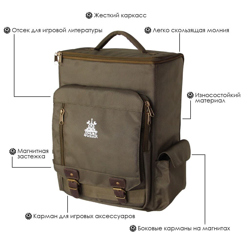 Ork's Workshop Bag-R Mark V (Зелёный) - новый рюкзак от Дядюшки Орка для хранения и переноски твоих миниатюр - теперь еще качественнее и надежнее! Имеется пять вариантов цветовой схемы - подбери самый подходящий! Габариты рюкзака: 30см х 18см х 40см