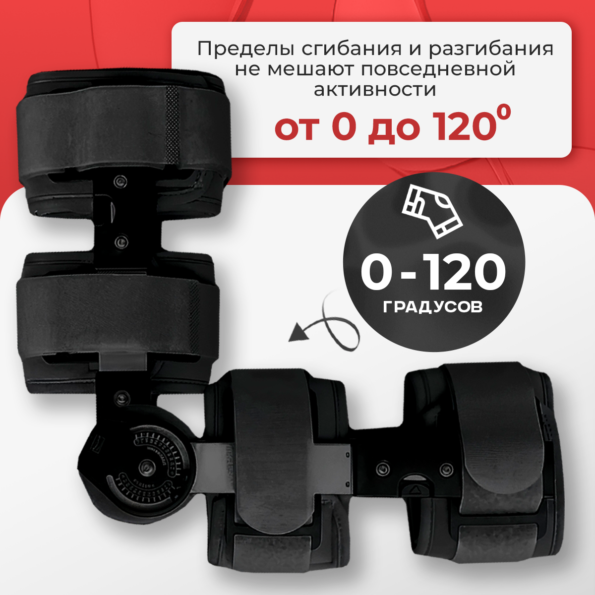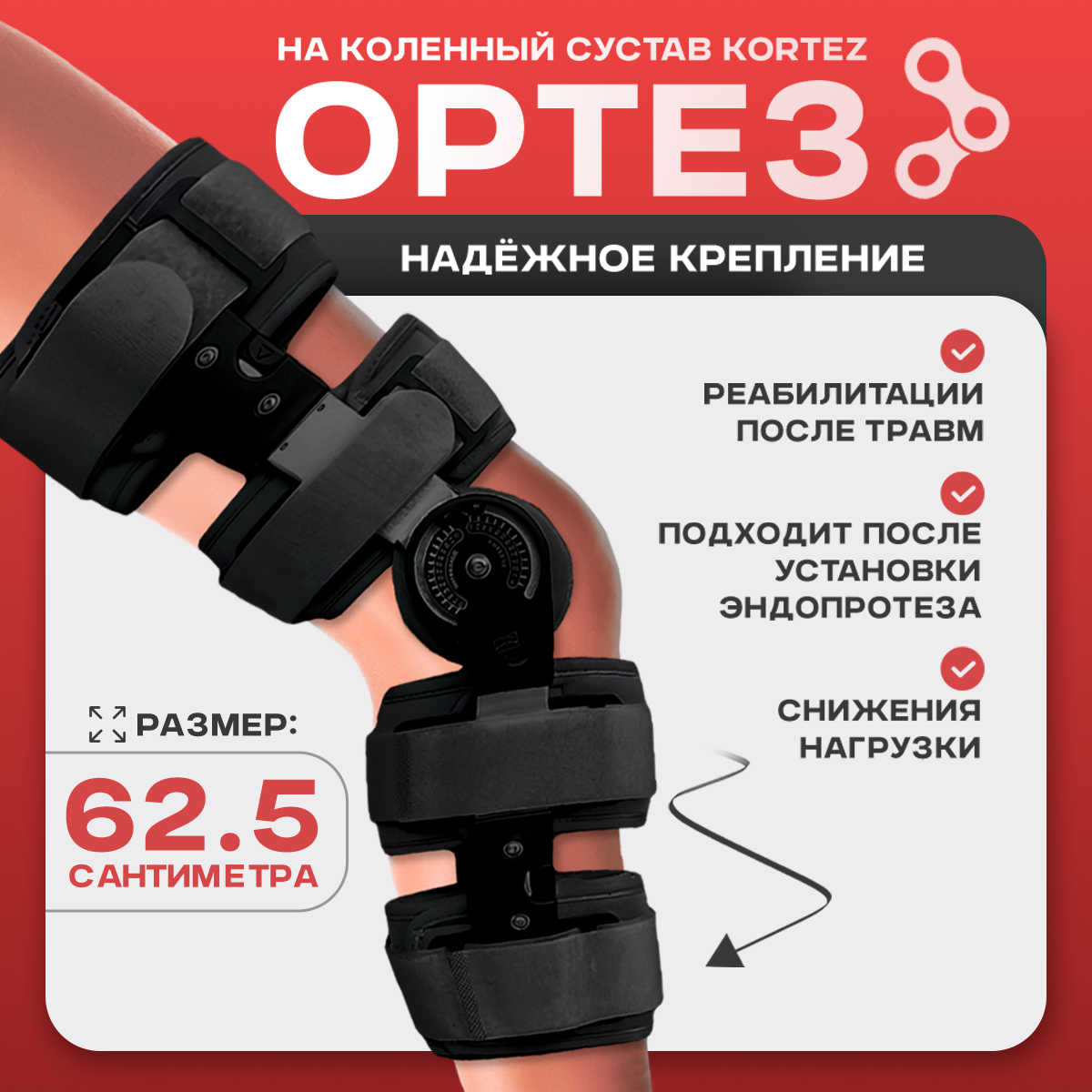Бандаж от боли в коленях оснащен регулировками, которые позволяют подстраивать его под индивидуальные потребности пациента. После удлинения ортез достигает длины 62,5 см. Он обеспечивает фиксированный угол и возможность регулировки растяжения колена, что помогает контролировать степень сгибания и расширения. Эти функции делают ортез для лечения универсальным решением для выполнения упражнений и поддержания правильного положения колена во время восстановления.