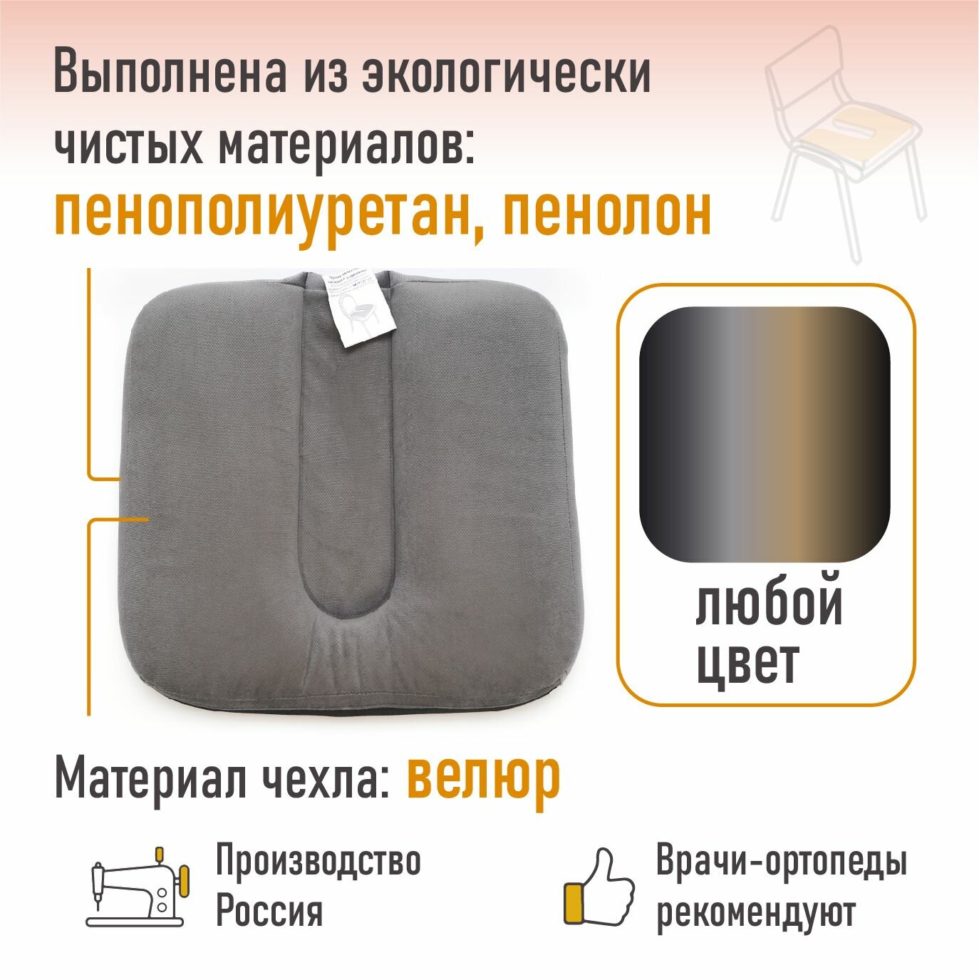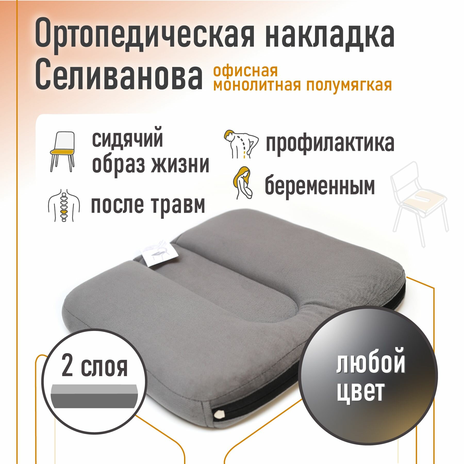 Купить Ортопедическая накладка/подушка Селиванова офисная монолитная Полумягкая 36х38 (любой цвет) с доставкой по всей России.