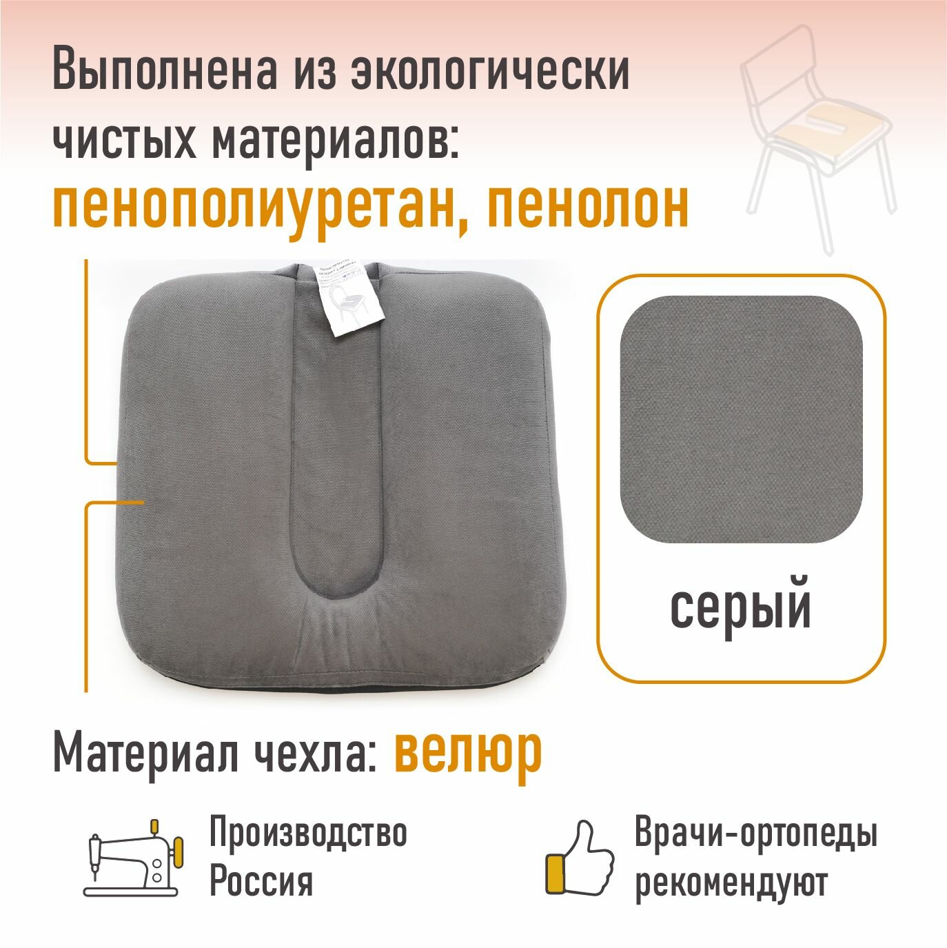 Купить Ортопедическая накладка/подушка Селиванова офисная на стул монолитная Полумягкая 36×38 (серый) с доставкой по всей России.