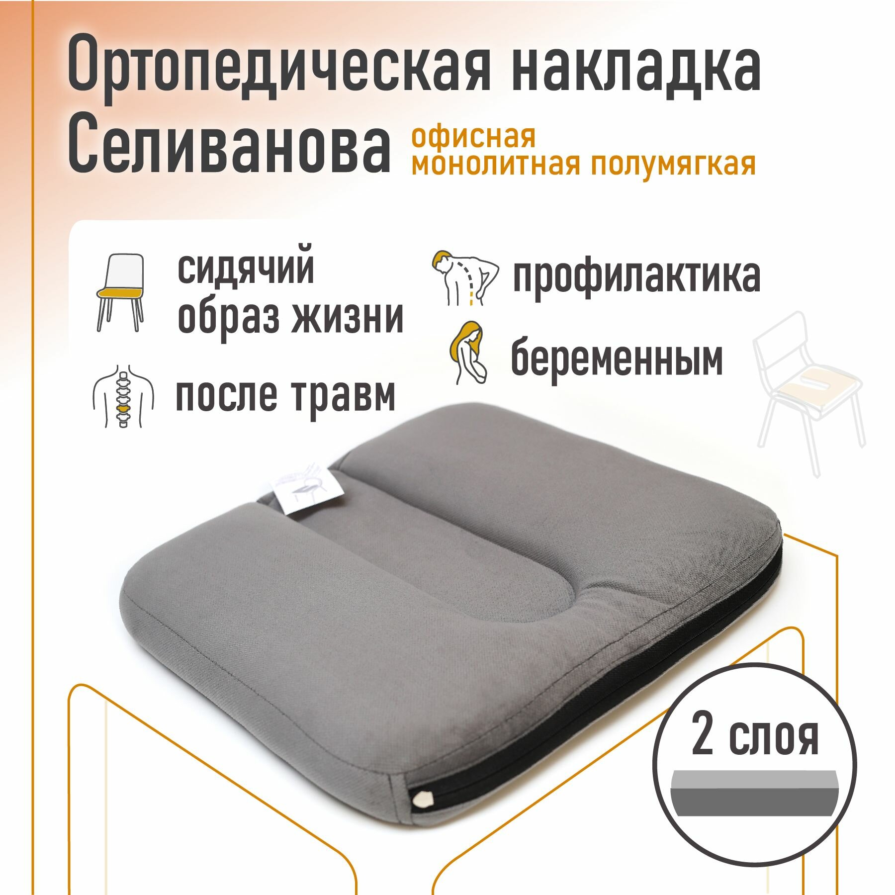 Ортопедическая накладка/подушка Селиванова офисная на стул монолитная Полумягкая 36×38 (серый): сравнение цен, характеристики, фото, актуальное наличие и цены.