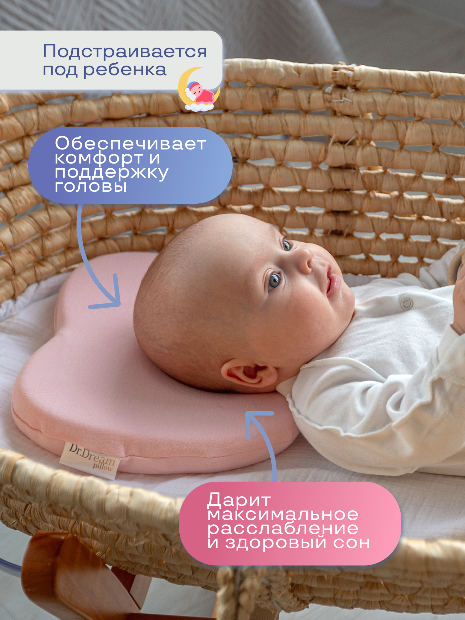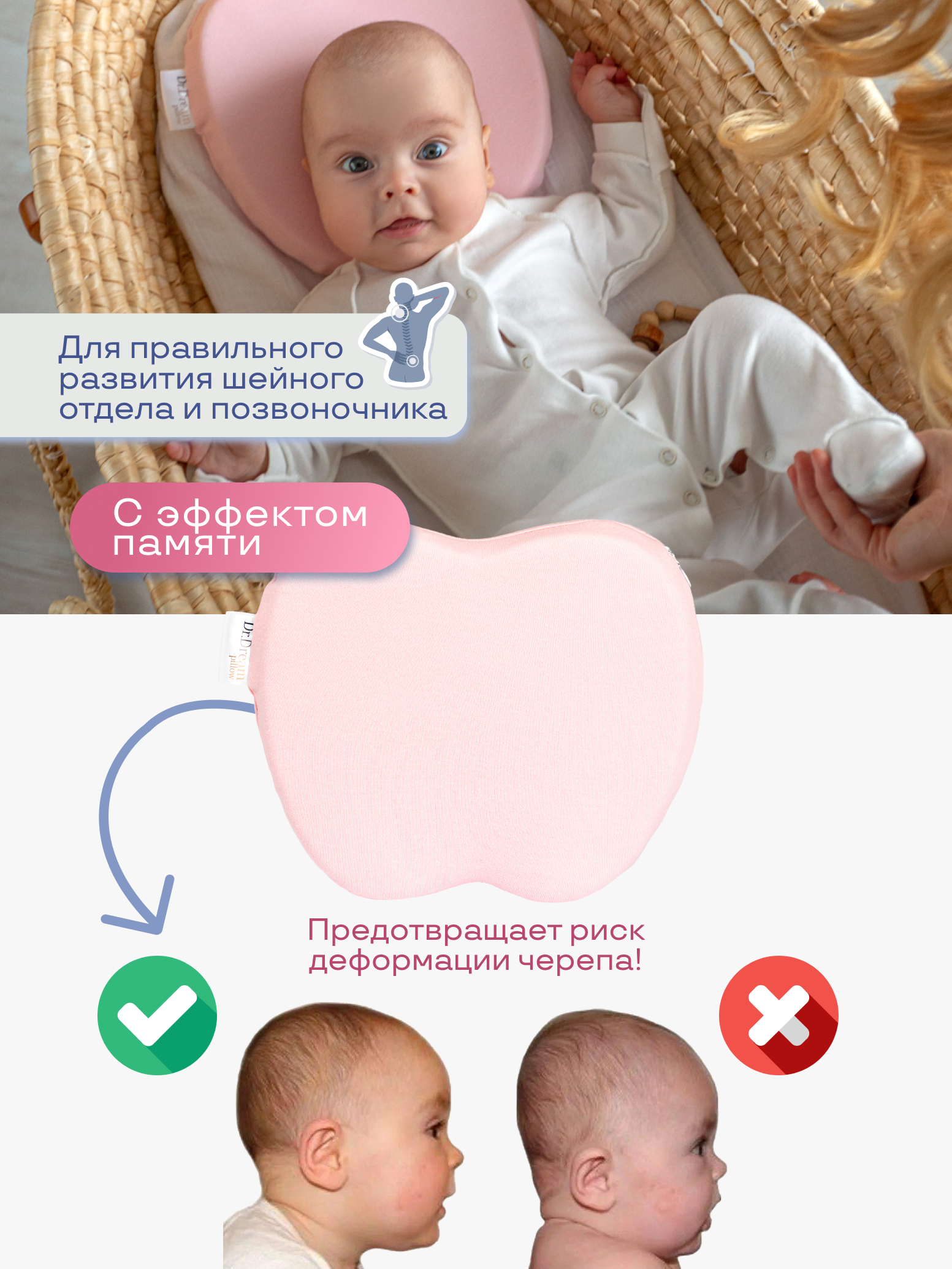 Купить Ортопедическая подушка-бабочка для сна новорожденных Dr Dream с доставкой по всей России.