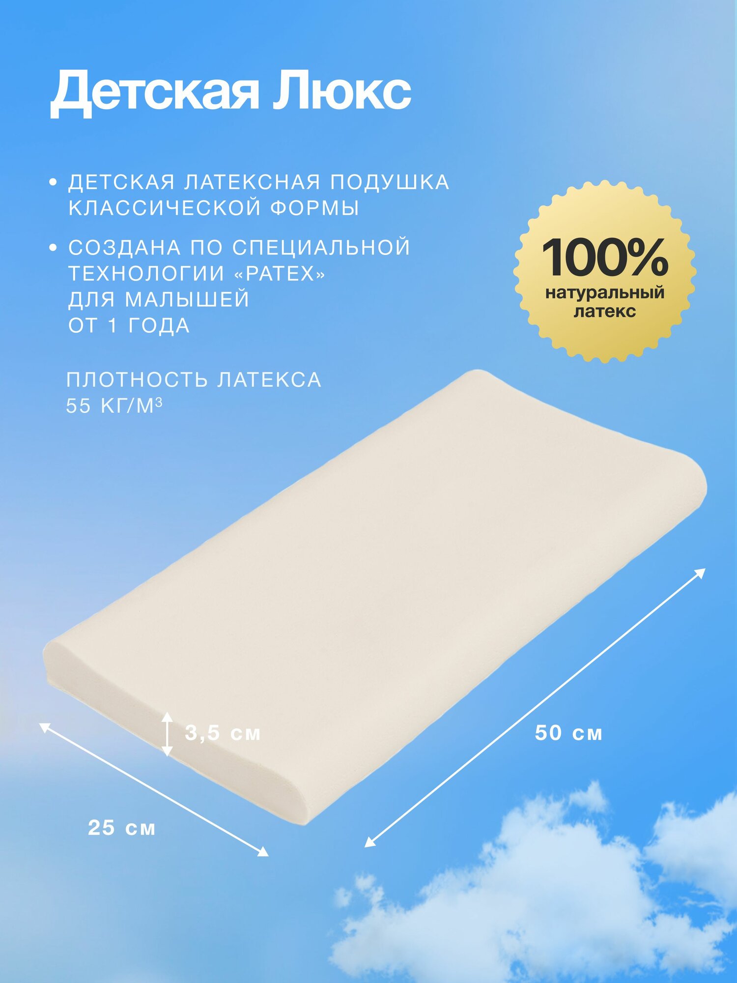 Ортопедическая подушка для сна PATEX Детская Люкс 100% натуральный латекс Таиланд: сравнение цен, характеристики, фото, актуальное наличие и цены.