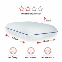 Мягкая подушка с оптимальным ответным давлением. Эргономичная форма и эффект памяти делают подушку универсальной. Подойдёт для сна в любом положении для детей и взрослых. Средняя степень жёсткости достигается благодаря специальной форме и размеру, при этом подушка сохраняет высокий уровень поддержки головы.