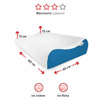 "Просто подушка No 20" ортопедическая подушка с охлаждающим гелем для сна формы валики, степень жесткости средняя 60х40х11/13 см.