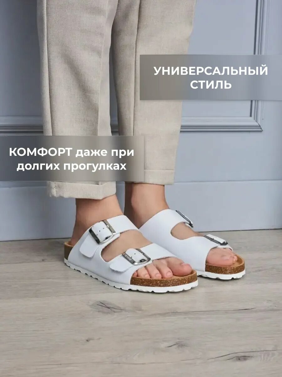 Верх стельки из натуральной замши отлично впитывает влагу, а также не позволяет ноге скользить внутри обуви. Два широких ремешка с металлическими пряжками позволят оптимально отрегулировать обувь по полноте и хорошо зафиксировать на ногах. Легкая и гибкая рифленая подошва из ЭВА практически не ощущается на ногах, позволяя активно двигаться в течение дня, не ощущая усталости.