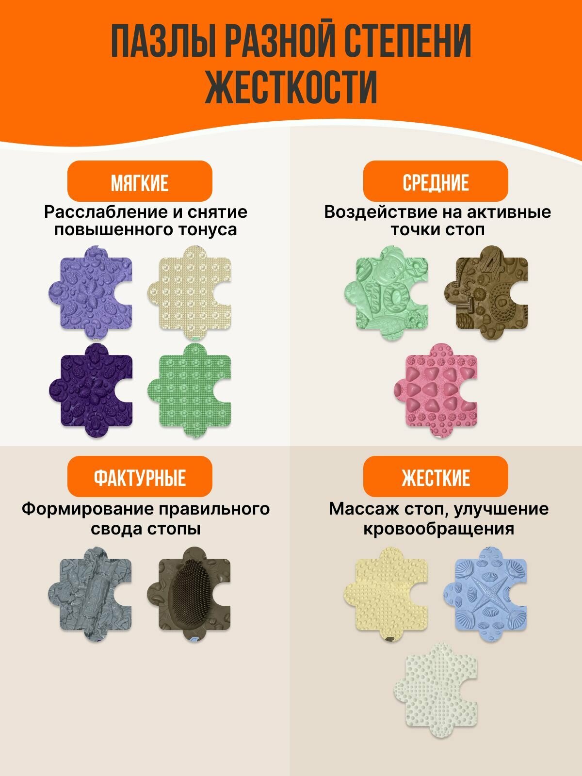 | Особенности | массажная поверхность, нескользящая поверхность, с буквами, с цифрами, с элементами-вкладышами, сумка для переноски |