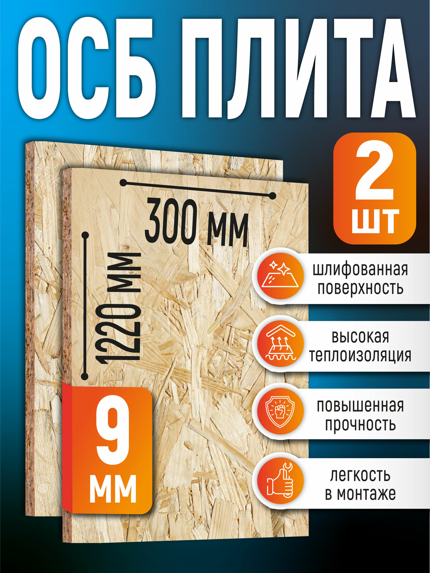 ОСБ (2 шт) 9мм 300х1220 влагостойкая OSB-3 плита для пола, стен, кровли: сравнение цен, характеристики, фото, актуальное наличие и цены.
