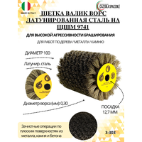 Щетка для Makita 9741, Д100*120*12,7+2 отв, ворс корд латунир-я сталь 0,30 осборн (код 3-303) по дереву на ЩШМ 9741 для браширования и зачистки плоских поверхностей
