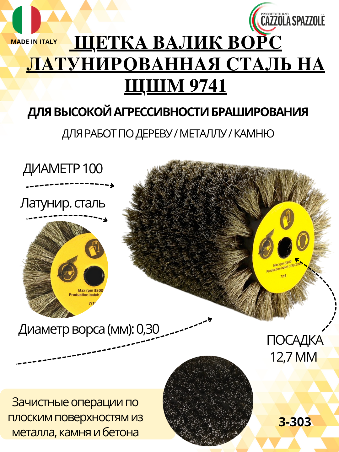 Стальная щетка для Makita 9741 Щетка цилиндрическая с ворсом из кордовой латунированной стальной проволоки диаметром 0,30 мм, предназначена для высокой агрессивности браширования (брашировка, текстурирование) плоских изделий из разных пород древесины. Высокая агрессивность обработки мягких слоев (годовых колец) древесины. Высокая агрессивность обработки твердых слоев (годовых колец) древесины. Максимальная скорость (об/мин): 3500 Средний ресурс работы (м²): 90 Параметры работы: 1. Длительное превышение допустимого давления на щетку при работе (заглубление в материал более 2 мм) приводит к ускоренному износу и не является гарантийным случаем. Сокращение ресурса щетки происходит в следствии усталостных явлений в проволоке. Что бы добиться глубокой брашировки, лучше сделайте 2-3 прохода и обработайте в итоге 100 м2. Давя сильно на щетку и делая глубокий браш за один проход, вы убиваете инструмент довольно быстро. 2. Площадь обработки сильно зависит от состояния поверхности до обработки, скорости и интенсивности работы, количества проходов и того, какую вы хотите получить поверхность после. 3. Щетка предназначена для работы только по плоским поверхностям.