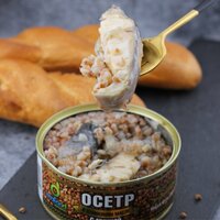 | Состав | осетр (80 г), гречка, оливковое масло, соль, вода |