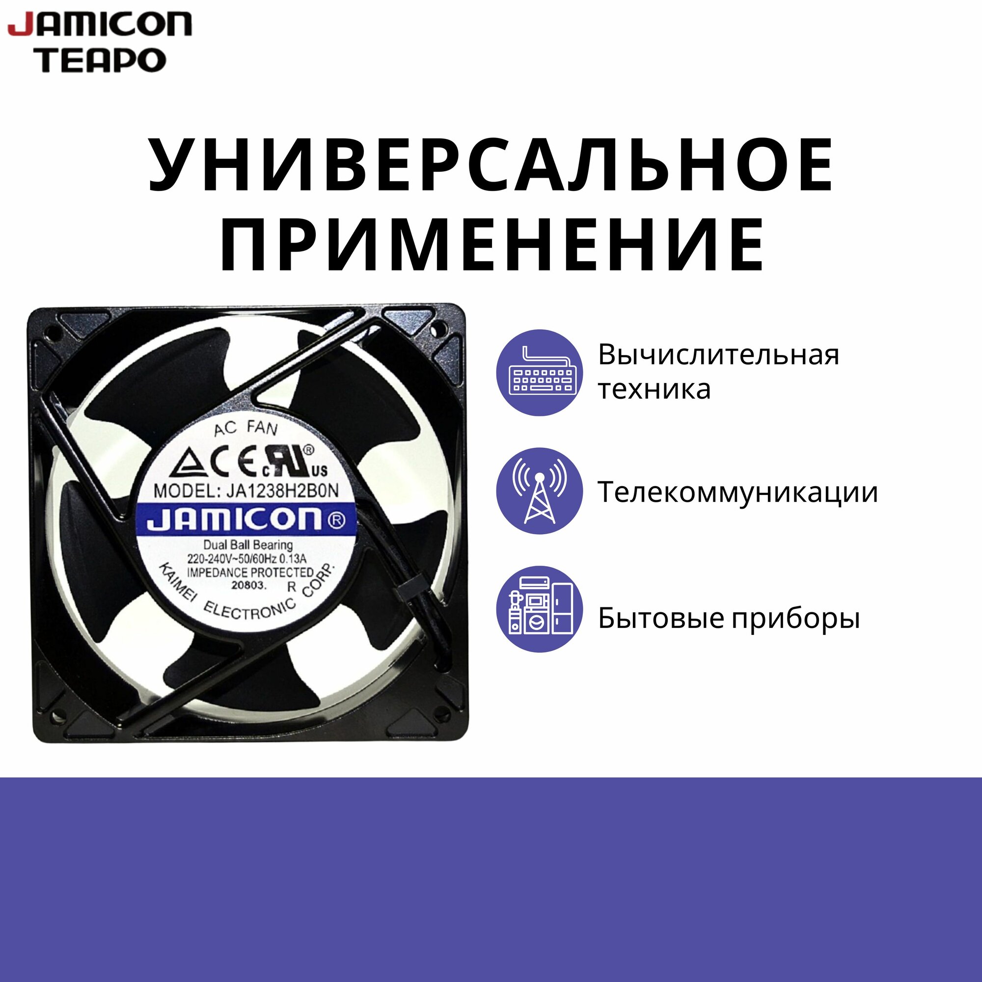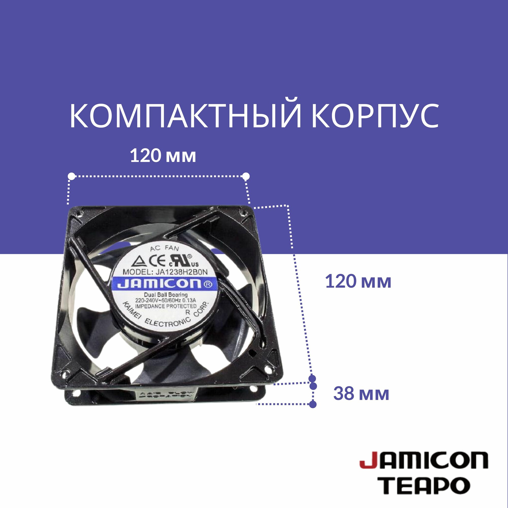 Осевой вентилятор 120x120x38 мм с шариковым подшипником, 220-240 VAC, 85/95 CFM, 45/47 дБА, JAMICON JA1238H2B0N-T: сравнение цен, характеристики, фото, актуальное наличие и цены.