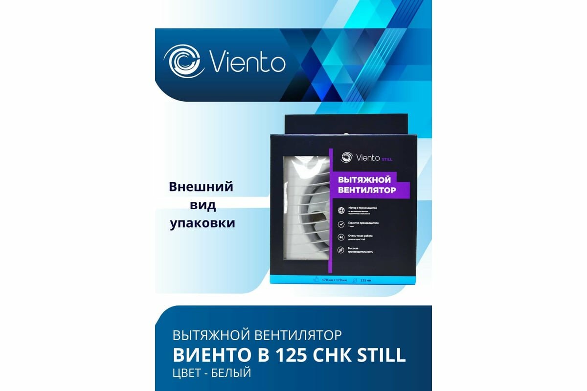 Осевой вентилятор виенто, вытяжной с обратным клапаном, таймером и датчиком влажности, В125СНК STILL (240 м3), волна, шарикоподшипник виенто В125СНК STILL-B: сравнение цен, характеристики, фото, актуальное наличие и цены.