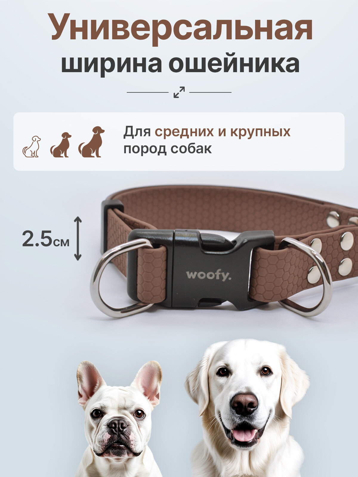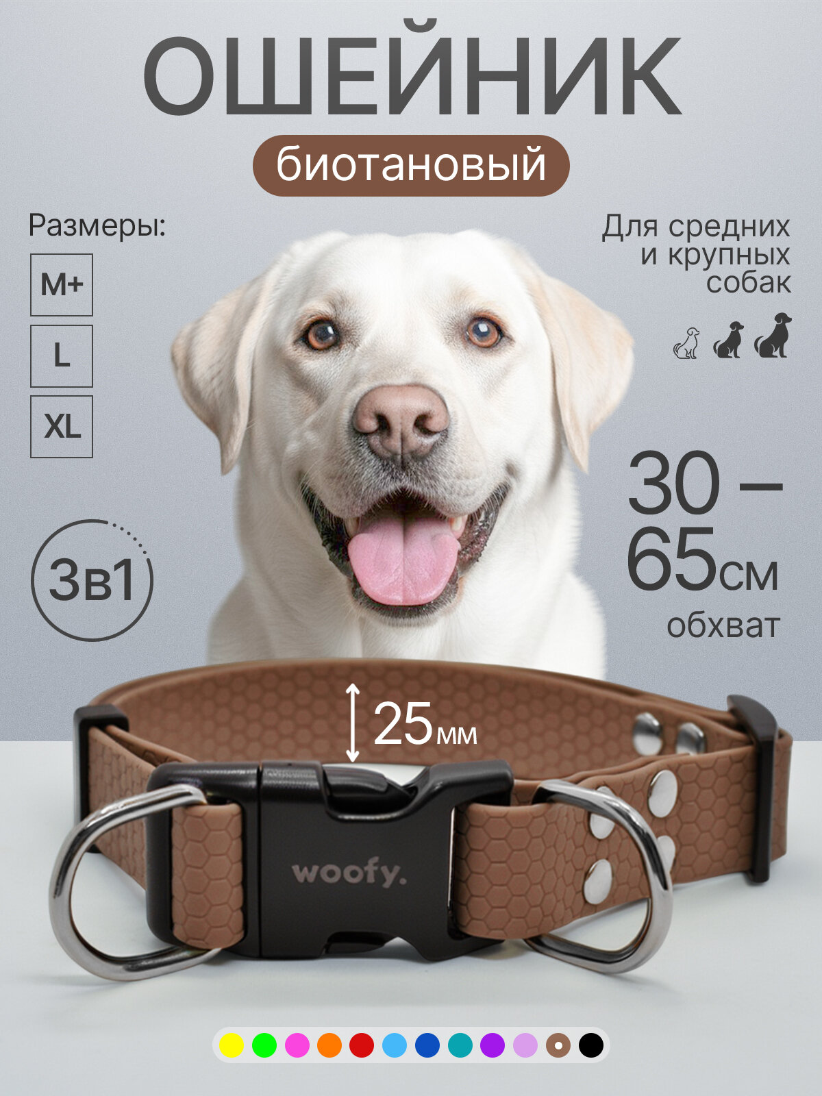Ошейник биотановый с двумя кольцами 30-42 см (M+), 25 мм, Woofy «GeksaDB» для собак средних и крупных пород, коричневый: сравнение цен, характеристики, фото, актуальное наличие и цены.