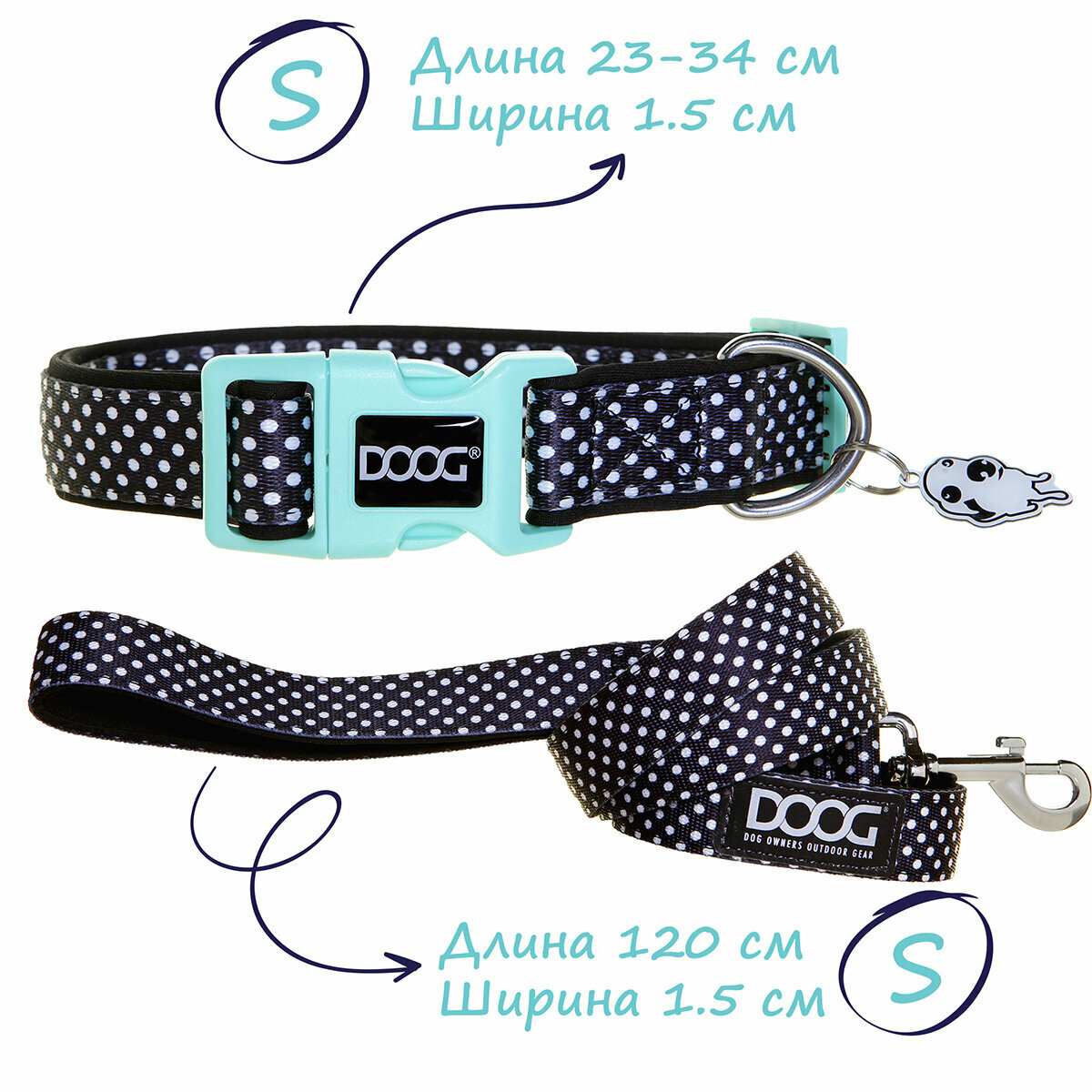 Ошейник и поводок для собак DOOG «Pongo», черный в белую крапинку, S, 23-34см/120х1.5см, комплект: сравнение цен, характеристики, фото, актуальное наличие и цены.