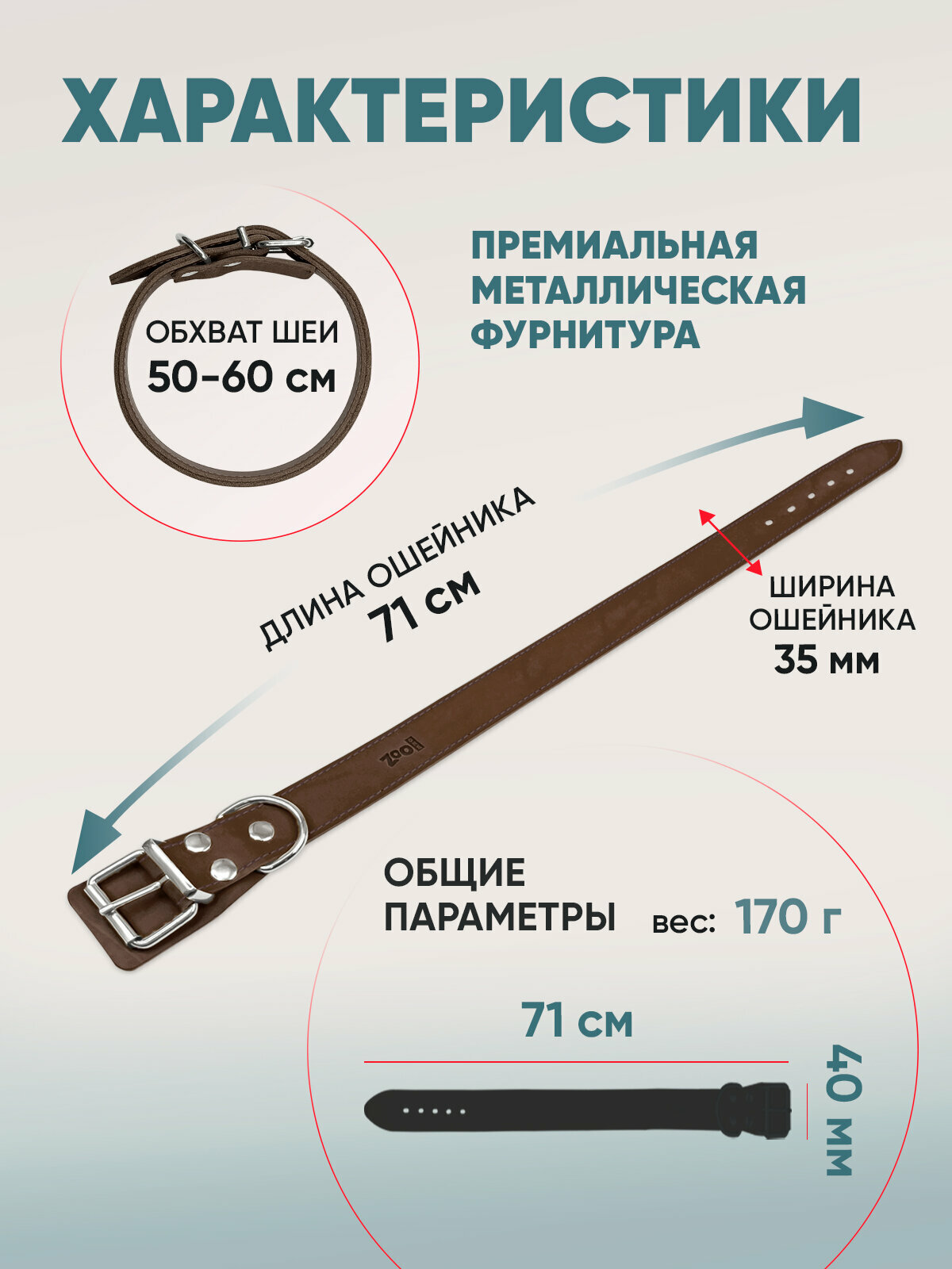 Купить Ошейник из натуральной кожи для собак ZooOne, 2-х слойный, 35 мм, обхват от 50 до 60 см, пряжка никель, (коричневый) с доставкой по всей России. Ошейник из натуральной кожи для собак ZooOne, 2-х слойный, 35 мм, обхват от 50 до 60 см, пряжка никель, (коричневый): сравнение цен, характеристики, фото, актуальное наличие и цены.