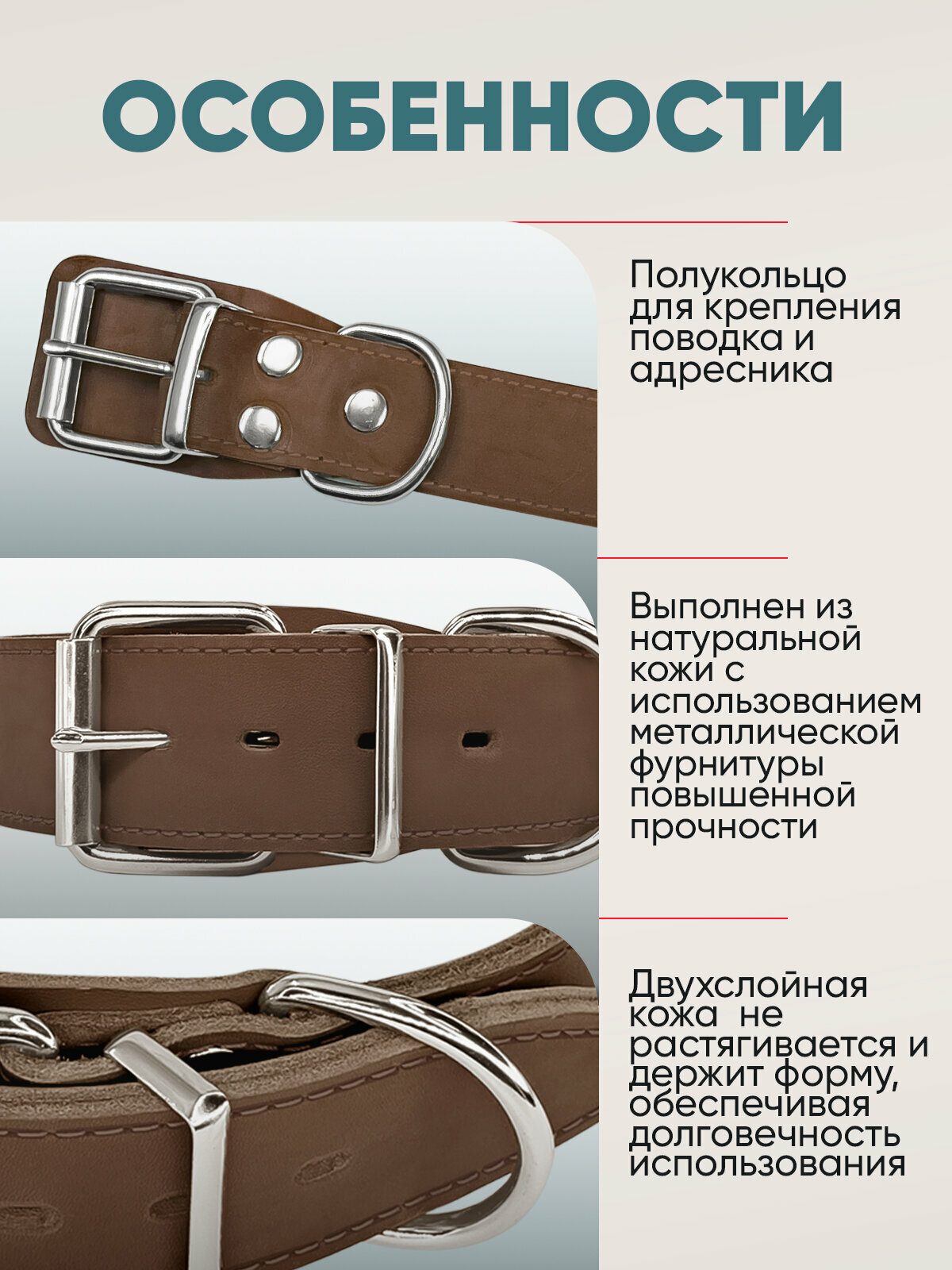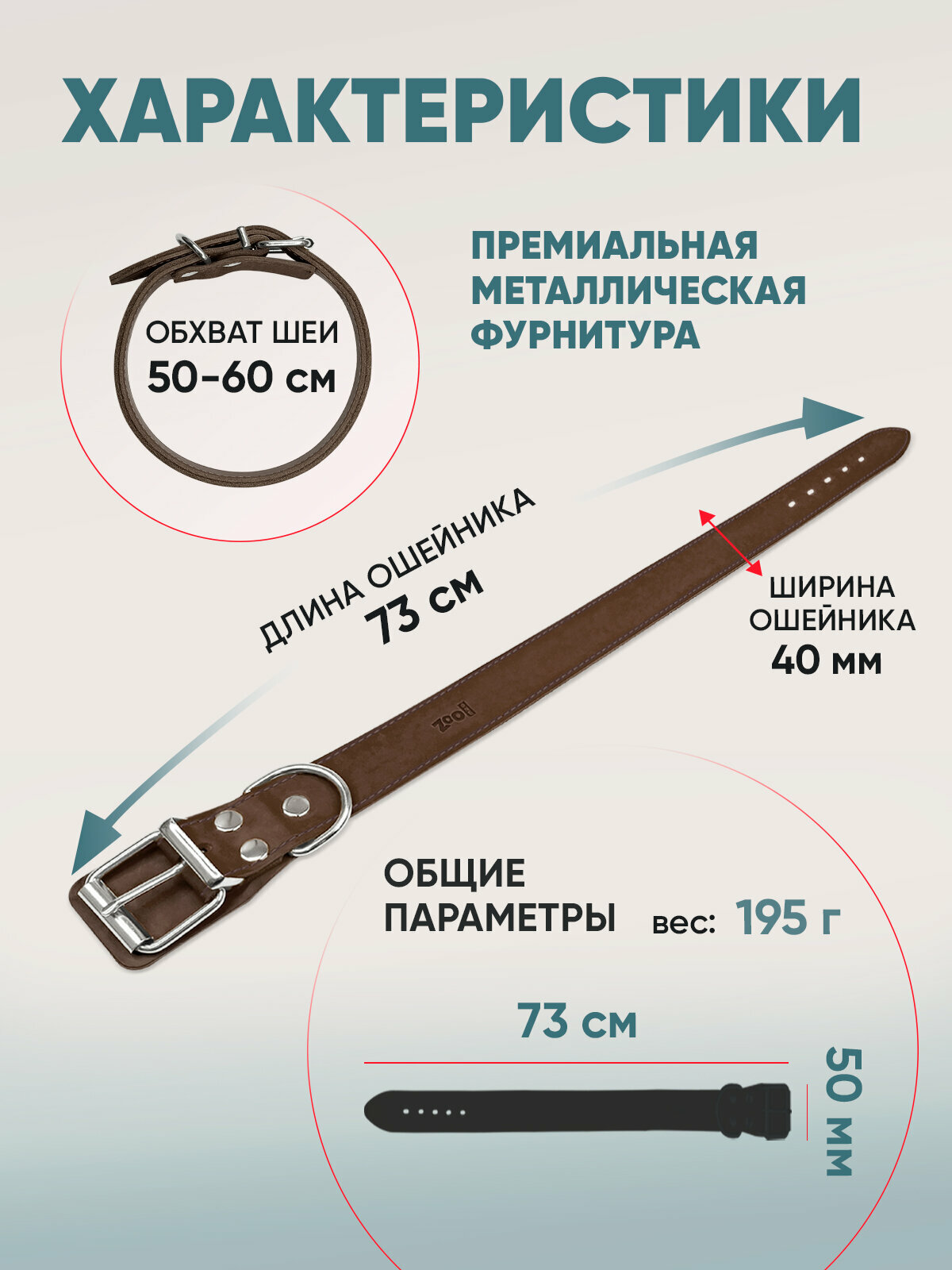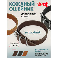 Ошейник из натуральной кожи для собак ZooOne, ширина 2-х слойный, 40 мм, обхват от 50 до 60 см, пряжка ролик никель, (коричневый), 25-0692: сравнение цен, характеристики, фото, актуальное наличие и цены.