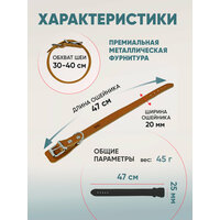 Кожаный ошейник для собак выполнен из натуральной кожи с использованием фурнитуры повышенной прочности. Вставка из кожи препятствует попаданию шерсти во время застегивания, она не будет натирать, сковывать движения питомца, ношение будет комфортным. Полукольцо кольцо для крепления поводка и украшения (адресника). Дополнительное укрепление полукольца заклепкой обеспечивает высокую разрывную нагрузку изделия. Ошейник для собак из кожи - стильный прочный аксессуар. Ошейник для собак представлен в нескольких размерах, обратите внимание на название товара - в нем указан обхват шеи питомца. Анатомические ошейники для собак продуманы и созданы вручную из кожи Российского производства. Нейлоновые нити повышенной прочности в цвет изделия - классический стиль, подтвержденный временем. Ошейник упакован в подарочную упаковку - прочный пластиковый мешочек, который можно использовать для хранения мелочей в доме. Размеры: Обхват шеи регулируется от 30 до 40 см. Ширина ошейника 20 мм. Вес ошейника 45 грамм. Состав: натуральная кожа, металл, нить нейлоновая. пряжка никель
