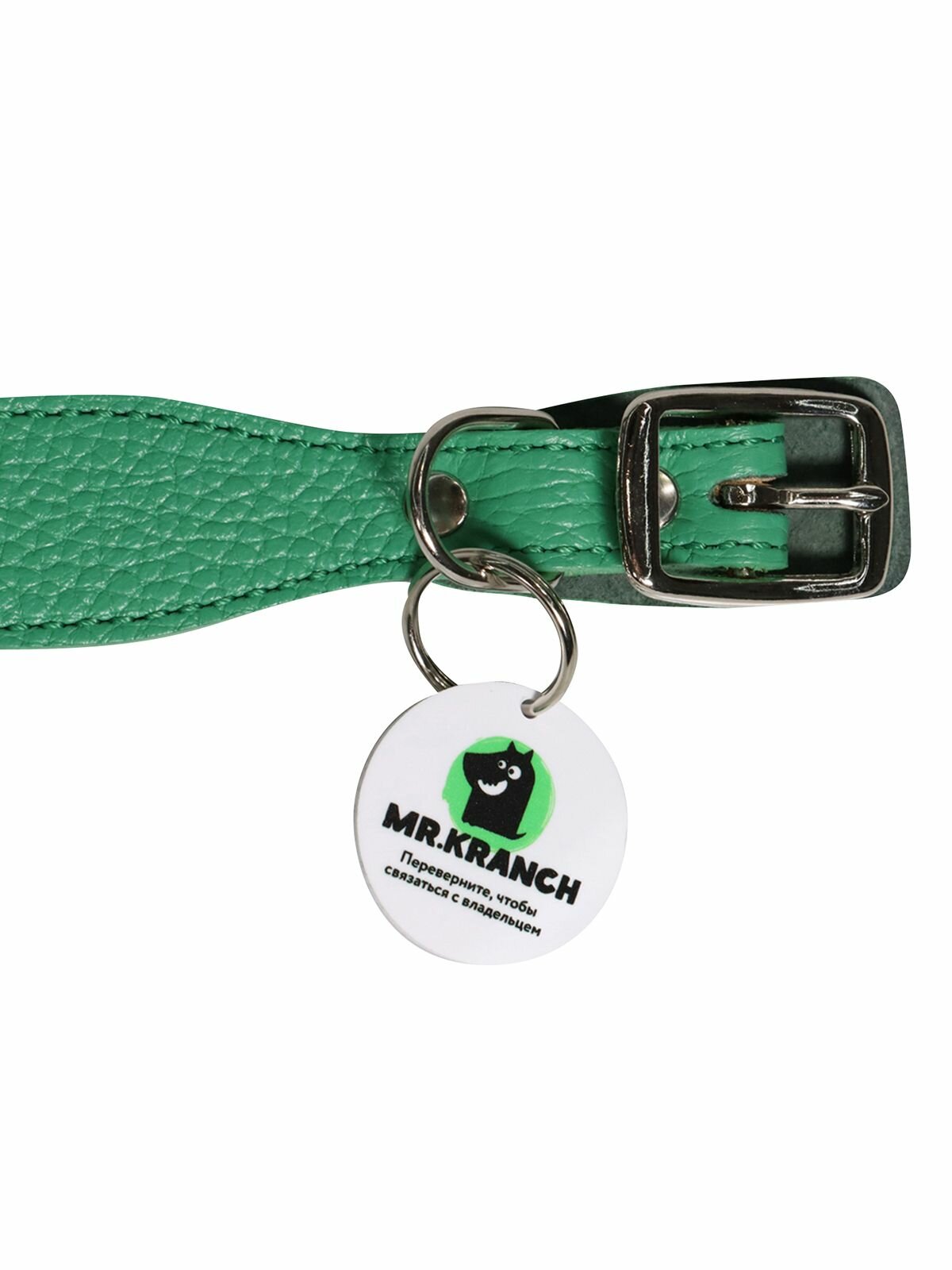 Ошейник Mr.Kranch для собак из натуральной кожи с QR-адресником, 20-24см, зеленый: сравнение цен, характеристики, фото, актуальное наличие и цены.