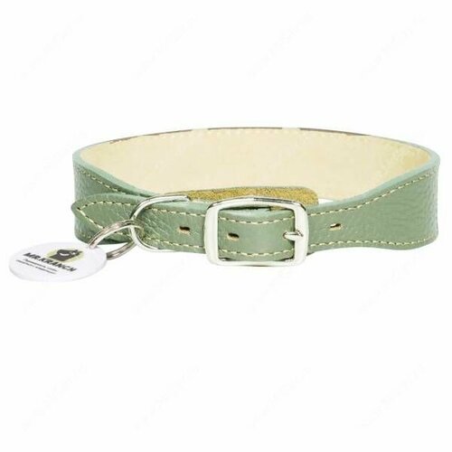 Ошейник для собак от российского бренда Mr.Kranch - представляет собой изделие из превосходной органической кожи, изготовленное в мягком зеленоватом оттенке и имеющее QR-код, который позволит установить связь с владельцем в случае пропажи домашнего питомца. Размер варьируется в пределах от 25 до 30 сантиметров, что делает его пригодным для собак маленького и среднего размера.
