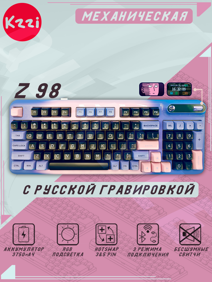 Клавиатура механическая беспроводная игровая с экраном KZZI Z98 / Подключение: 2.4G, BLUETOOTH, TYPE-C/Русская раскладка: сравнение цен, характеристики, фото, актуальное наличие и цены.