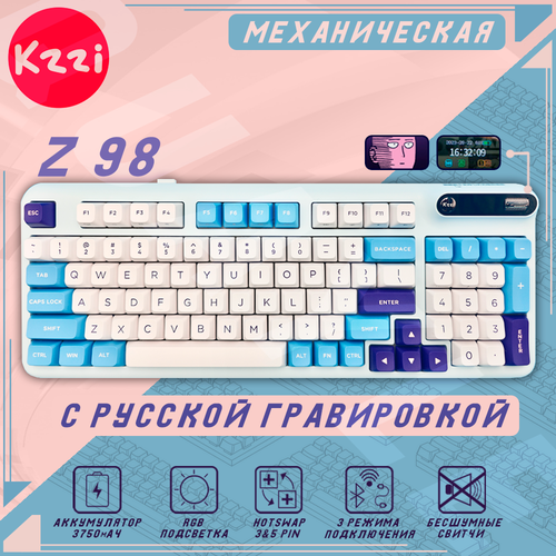 Клавиатура механическая беспроводная игровая с экраном KZZI Z98 / Подключение: 2.4G, BLUETOOTH, TYPE-C/Русская раскладка: сравнение цен, характеристики, фото, актуальное наличие и цены.