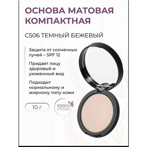 Компактная матовая минеральная тональная основа C506 темный бежевый — это комфорт в каждой детали: удобный футляр, надежное покрытие, забота о коже. Выбирайте ее для дней, когда важно выглядеть безупречно без лишних усилий, ощущая полную уверенность в результате.