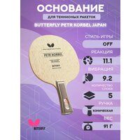 Petr Korbel – безусловный бестселлер среди оснований Butterfly, радующий профессионалов и любителей настольного тенниса своим качеством и игровыми характеристиками уже не одно десятилетие. Petr Korbel – легендарное основание категории OFF для вариативной атакующей игры, обладающее прекрасной обратной связью с мячом и носящее имя известного европейского игрока, участника пяти Олимпиад, Петра Корбеля. Основание толщиной 5,9 миллиметров и весом 85 г. состоит из 5 слоев натурального дерева (Лимба и Айюс), имеет лопасть размером 159 х 151 миллиметров и выпускается в вариантах с прямой и конической рукоятками.