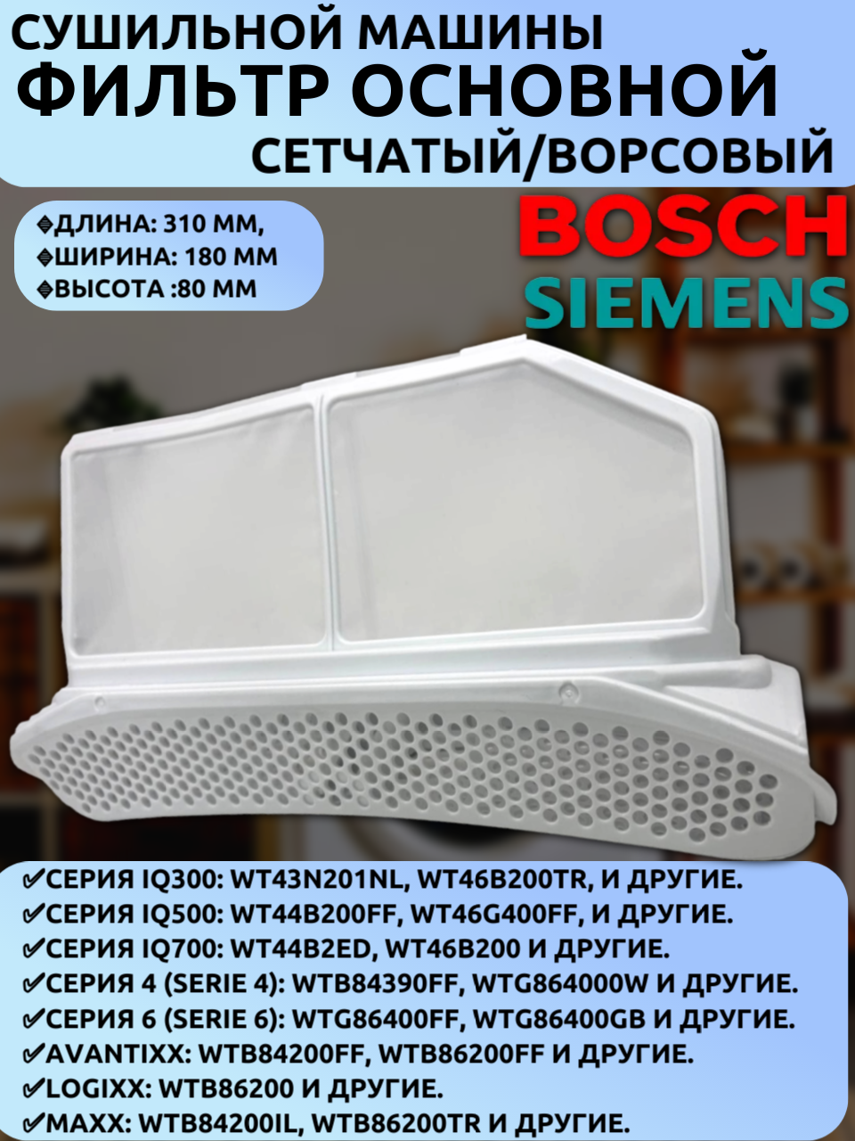 Основной сетчатый (ворсовый) фильтр 00752387 для сушильных машин Bosch, Siemens серий iQ300, iQ500, iQ700, Serie 4/6: сравнение цен, характеристики, фото, актуальное наличие и цены.