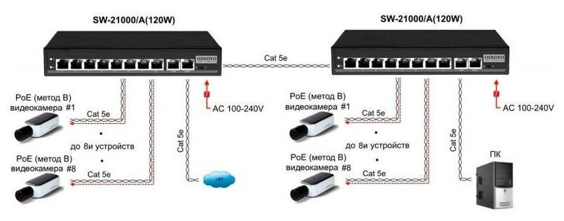 | Дополнительная информация | Коммутатор/удлинитель SW-21000/A(120W) Кабель питания для AC 100-240V Руководство по эксплуатации Упаковка |