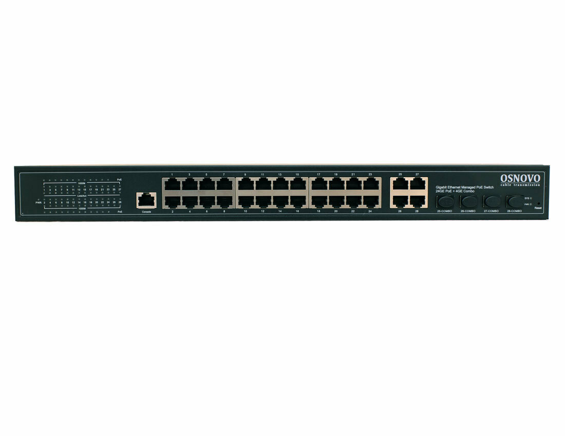 OSNOVO SW-8244/L(400W) Коммутатор управляемый L2 PoE Gigabit Ethernet на 24 RJ45 PoE + 4 x GE Combo Uplink, до 30W на порт, суммарно до 400W: сравнение цен, характеристики, фото, актуальное наличие и цены.