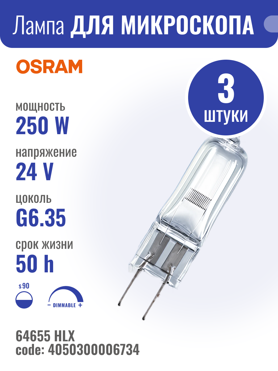 Купить OSRAM 64655 HLX — лампа галогенная 24V 250W G6.35 капсульная (комплект из 3шт.) с доставкой по всей России.