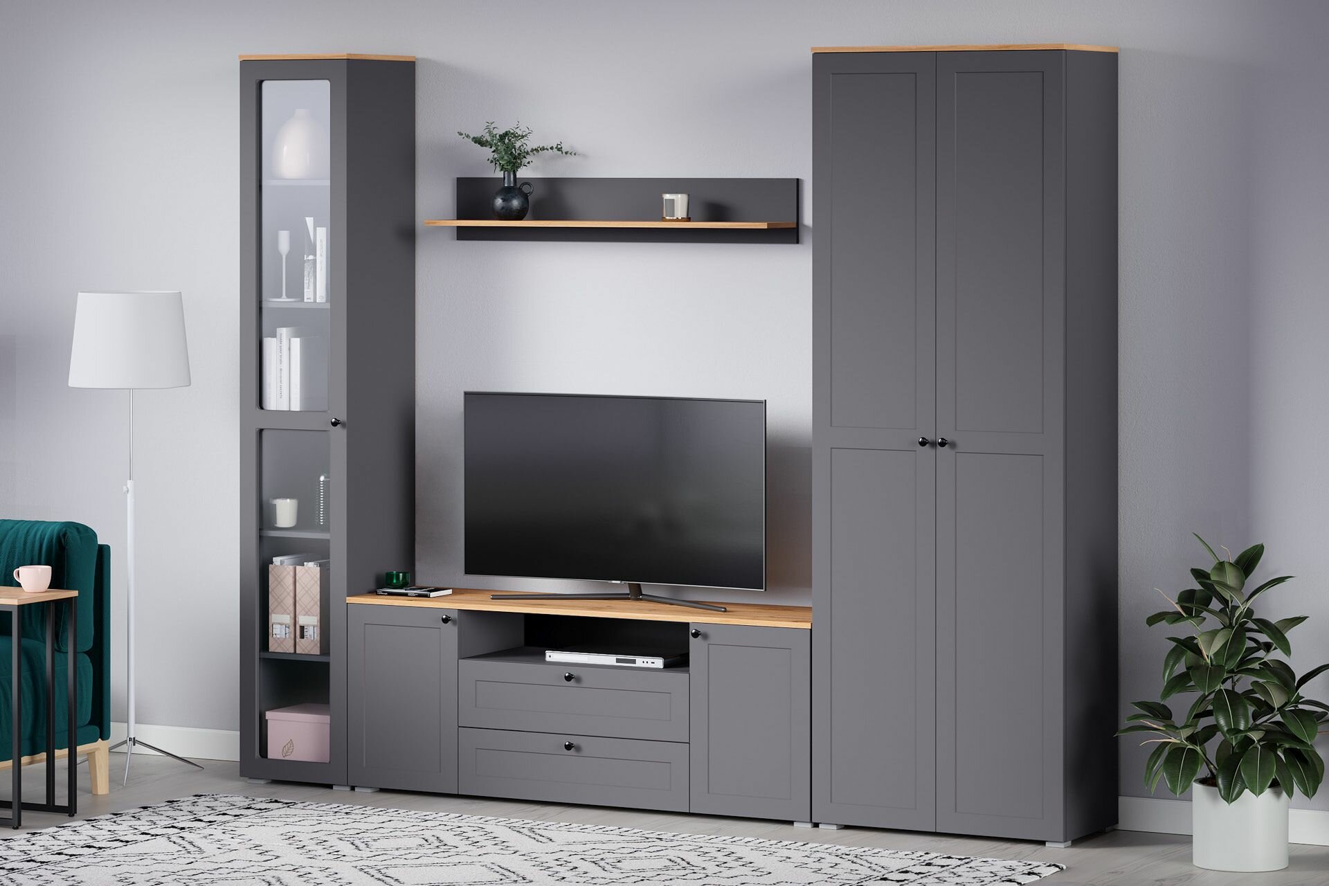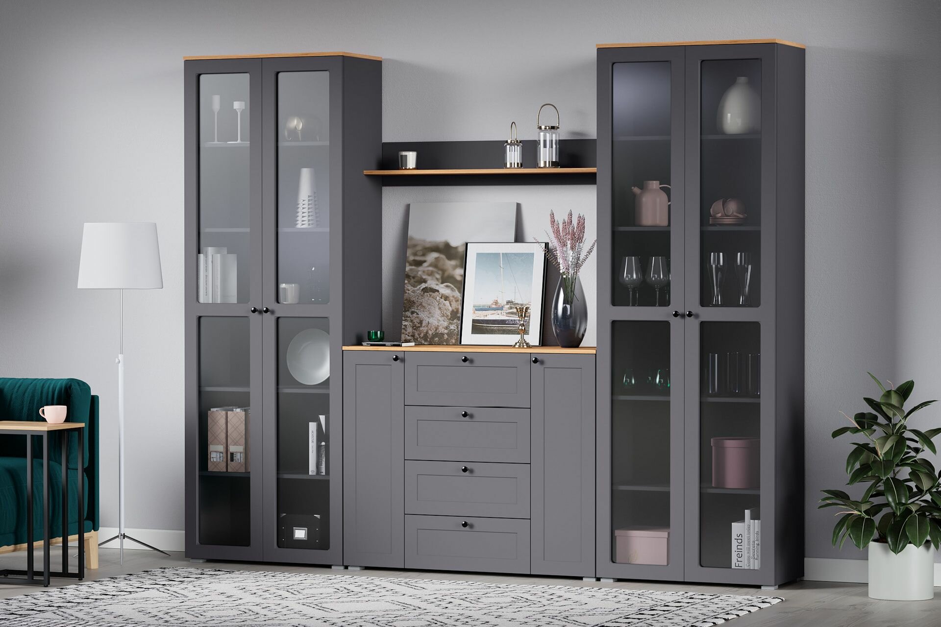 Купить Остин Шкаф-витрина 16.394.02 Серый Графит 0162 РЕ, Дуб Золотой CRAFT, графит ZB 856-2 ПВХ (Моби) с доставкой по всей России.
