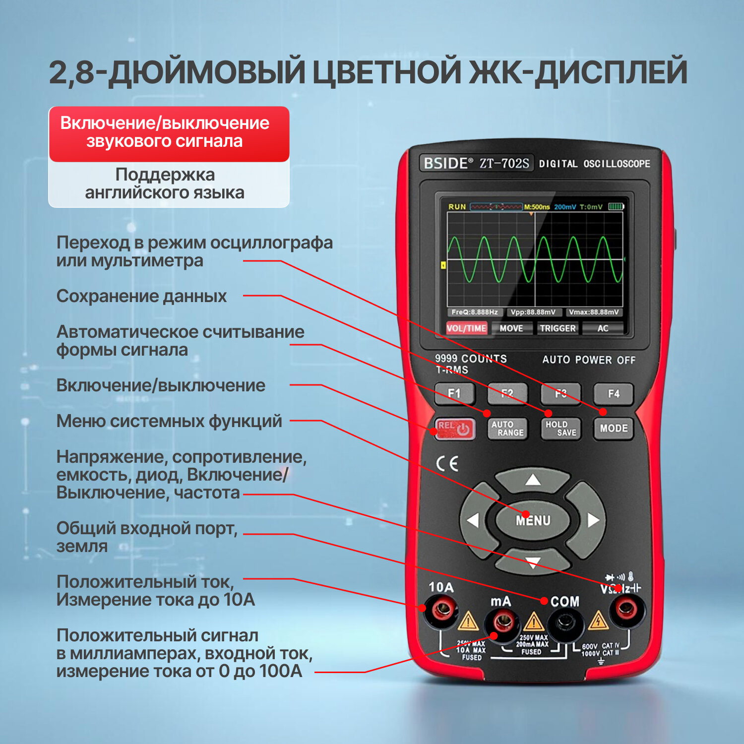Купить Мультиметр BSIDE ZT702S, для измерения частоты, силы тока, напряжения, ёмкости с доставкой по всей России.