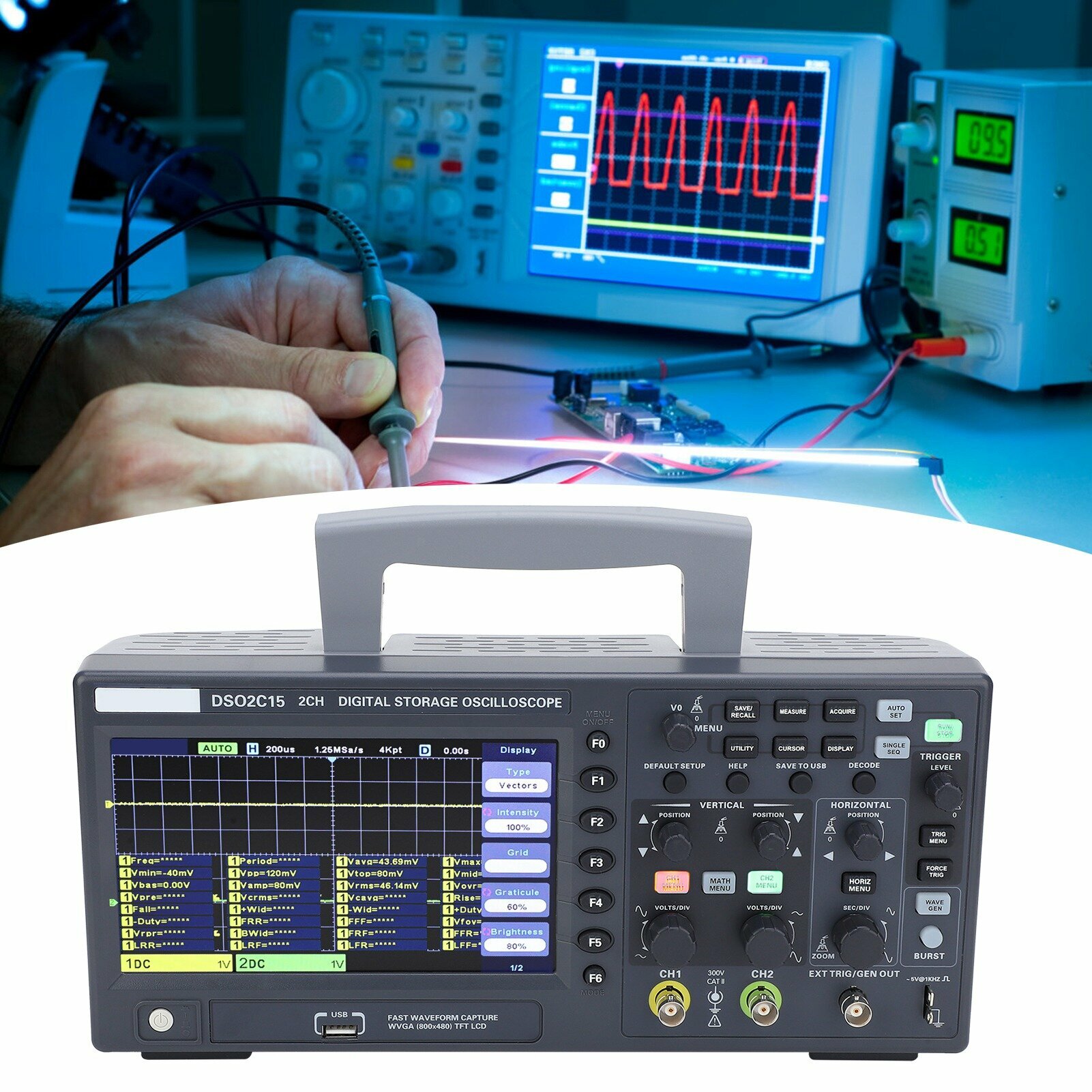 DSO2C15 Цифровое хранилище Осциллограф 150 МГц.: сравнение цен, характеристики, фото, актуальное наличие и цены.
