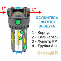 Осушитель сжатого воздуха GrossAIR силикагелевый (вход 1″; выход 1″) фильтр воздушный: сравнение цен, характеристики, фото, актуальное наличие и цены.