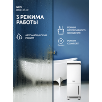 | Дополнительная информация | Wi-Fi модуль: Встроенный; Авто режим до целевого уровня влажности; Авторестарт при отключении питания; Индикация заполнения емкости; Потребляемый ток: 1,5 А; Режим непрерывного осушения; Тип отвода конденсата: Встроенный бак; Автоматический режим; Защита кнопок управления от детей; Управление c мобильного приложения по Wi-Fi; Вид управления: Электронное; Гарантийный документ: Гарантийный талон; Длина кабеля: 1 м; Длина шланга для удаления конденсата: 1 м; Класс пылевлагозащищенности: IPX0; Область применения: Бытовое оборудование (для домашнего использования); Серия: NEO; Сетевой кабель: Да (с вилкой); Система самодиагностики неисправности; |
