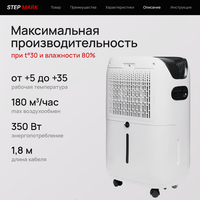 Влагопоглатитель (18 л/сутки) - это устройство, которое позволяет регулировать климат в вашем доме, квартире, офисе, гараже, поддерживает оптимальный уровень влажности в помещении. Предотвратит образование конденсата, влаги на окнах и стенах на даче, в кладовой, подвале, сауне, бассейне, ванной. Живя в городских условиях, в сезон дождей, снега и слякоти - автоматический воздухоосушитель то, что вам необходимо! Электрический прибор может применяться в межсезонье, в южных районах, в домах с повышенной влажностью, около водоемов. Собиратель влаги устранит затхлый запах, грибок и сырость, предотвратит появление черной плесени и подтеков в помещении, защищает мебель и технику от избыточной влажности, помогает предотвратить запотевание, может применяться для быстрой сушки белья, как альтернатива влагопоглощающего средства. Поглотитель влаги полезен для улучшения здоровья. Избыточная влажность способствует размножению бактерий, вызывающих аллергию, астму, насморк, кашель и другие респираторные заболевания. Тихая работа и не выделение тепла не нарушает комфорт. Белый цвет влагосборника гармонично вписывается в интерьер любой комнаты. Бытовой сушитель воздуха эффективен при температуре от 5℃ до 35℃ и относительной влажности от 40% до 90%. Мобильный осушитель обладает высокой производительностью и может поглощать до 750 мл влаги в час, что достаточно для поддержания сухости и свежести воздуха в помещениях. Подходит для помещений площадью до 55M². Бак для сбора конденсата объемом 3л. Преимущества нашего устройства: интегрированный гигрометр, экономит энергию, безопасный фреон, бесшумный компрессор, встроенный таймер, фильтр для очистки воздуха от пыли. Гаджет обладает интеллектуальной системой управления, которая позволяет настроить оптимальный уровень осушения. Оснащен колесиками и ручками, что делает его перемещение легким и быстрым. Гарантия 1 год. Перед заказом сравните характеристики с другими производителями kitfort, ballu, electrolux, neoclima, zanussi, jax, libhof.