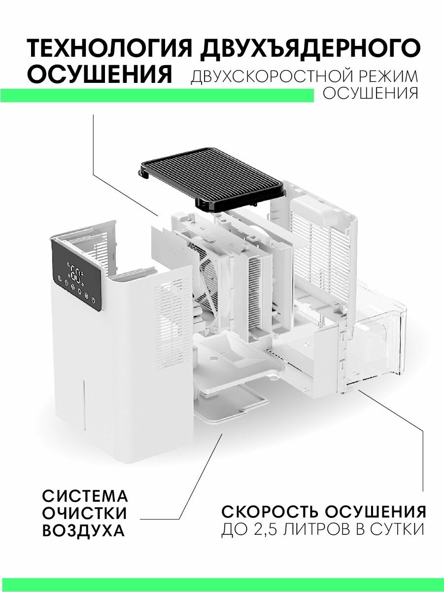 Осушитель воздуха, двухъядерный, влагопоглощение до 2.5 л/сут, белый, чёрный: сравнение цен, характеристики, фото, актуальное наличие и цены.