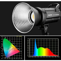 Вторая версия мощного студийного осветителя. В моноблок были добавлены 5 FX эффектов для работы с видео. На корпусе имеется дисплей для мониторинга параметров и диммер с плавным изменением характеристик Цвет.