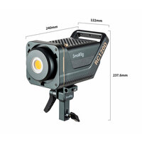 Компактный осветитель мощностью 120 Вт (энергопотребление 150 Вт) с дневной температурой света 5600К. Основные особенности: высокая точность цветопередачи (CRI 95+), плавная регулировка яркости без мерцания и 9 динамических спецэффектов: папарацци, фейерверк, молния, мерцающая лампа, вспышка, вечеринка, огонь. Моноблок может дистанционно управляться с помощью смартфона через приложение SmallGoGo для iOS и Android.